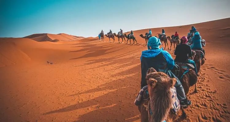 Early departure from your accommodation, and we'll travel through the beautiful Middle Atlas Mountains, with our first stop being Ifrane, often referred to as "Little Switzerland" due to its unique alpine architecture and cool climate. Take a stroll through its pristine streets and soak in the tranquil atmosphere. We continue our journey and traverse the scenic landscapes of the Middle Atlas, passing through cedar forests and picturesque valleys. Keep an eye out for Barbary macaques that inhabit the area. As we approach the magnificent Merzouga Desert, the scenery will transform into rolling dunes that seem to stretch to the horizon. Upon reaching Merzouga, you'll be captivated by the golden beauty of the desert. Embark on a two-hour camel ride into the heart of the dunes as the sun sets and paints the sky with vibrant hues. Arriving at our luxurious desert base camp, you'll be welcomed with warm hospitality, enjoy a traditional Moroccan dinner, and experience the magic of the desert night, filled with starry skies and Berber music.