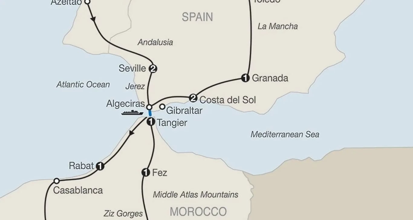 Upon your arrival, we will pick you up from the port, airport, or your accommodation in Tangier. Your journey will begin with a visit to Cap Spartel and the Hercules Caves, followed by a transfer to the picturesque blue town of Chefchaouen, crossing through Tetouan and the Rif Mountains.