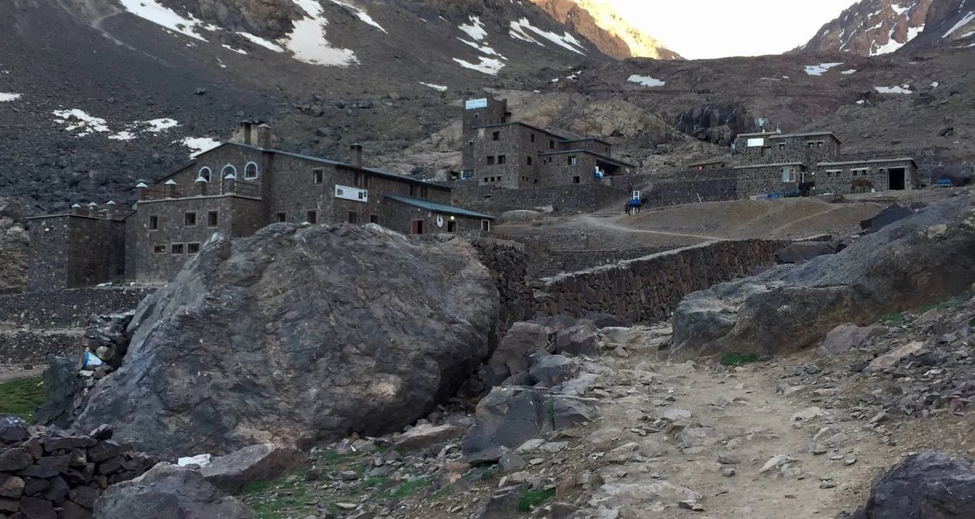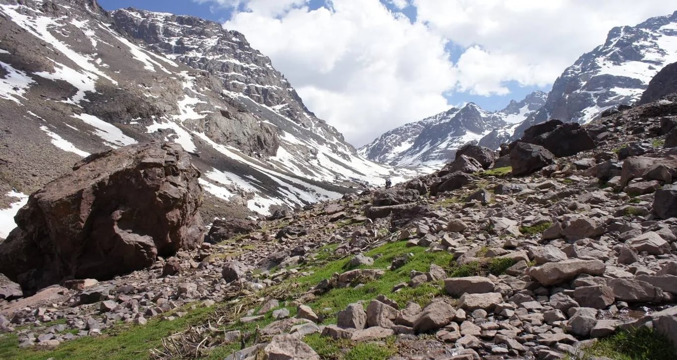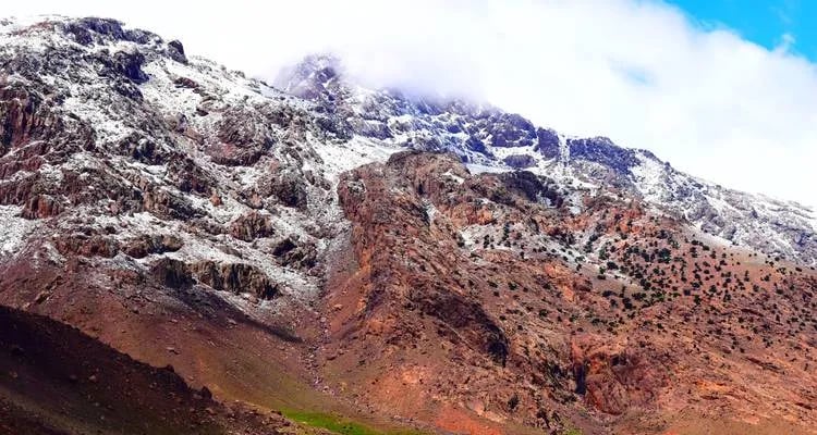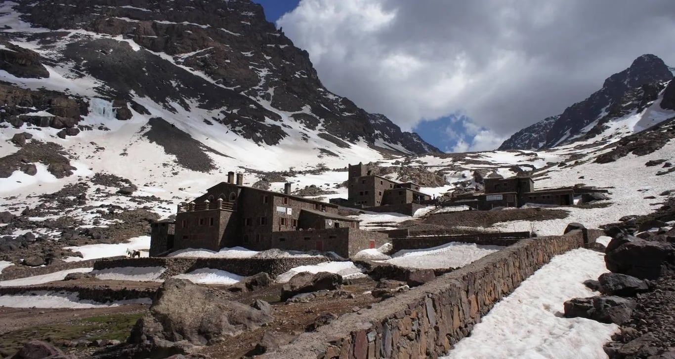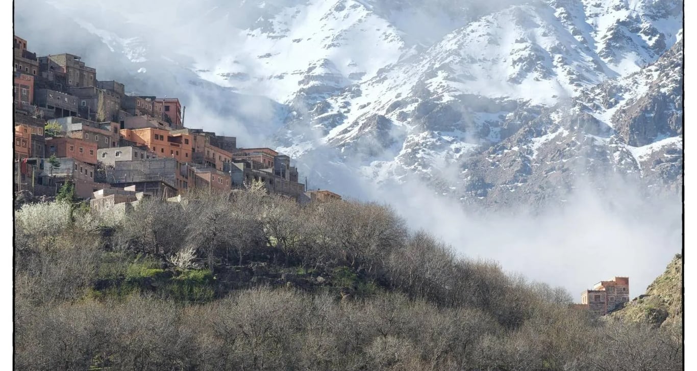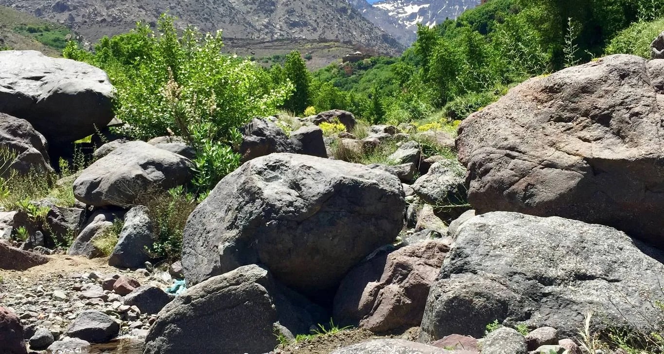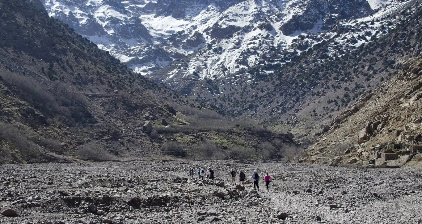 Departs by car from Marrakech around 9am. The drive takes about 1h30 and goes south up the Moulay Brahim Gorges, past the Asni weekly market every Saturday then to Imlil. Imlil is (1740m) set in the upper level foothills of the Western High Atlas mountains, a main trail-head with streams and paths branching out in all directions. Here we shall leave our vehicle to take a welcome glass of mint tea in the village and meet your local guide prior to setting out for some 4km excursion. We will go travel south to the Berber village of Aroumd (Aremd) (1843m), passing the hamlets of ait souka, Targa, and Imoula, up and down the stark slopes, the jagged Western High Atlas peaks of the Toubkal Massif before us – Jbels Aguelzim (3547m), Aksouâl (3847m) and the Adrar Adj (3122m) watching us all the way.